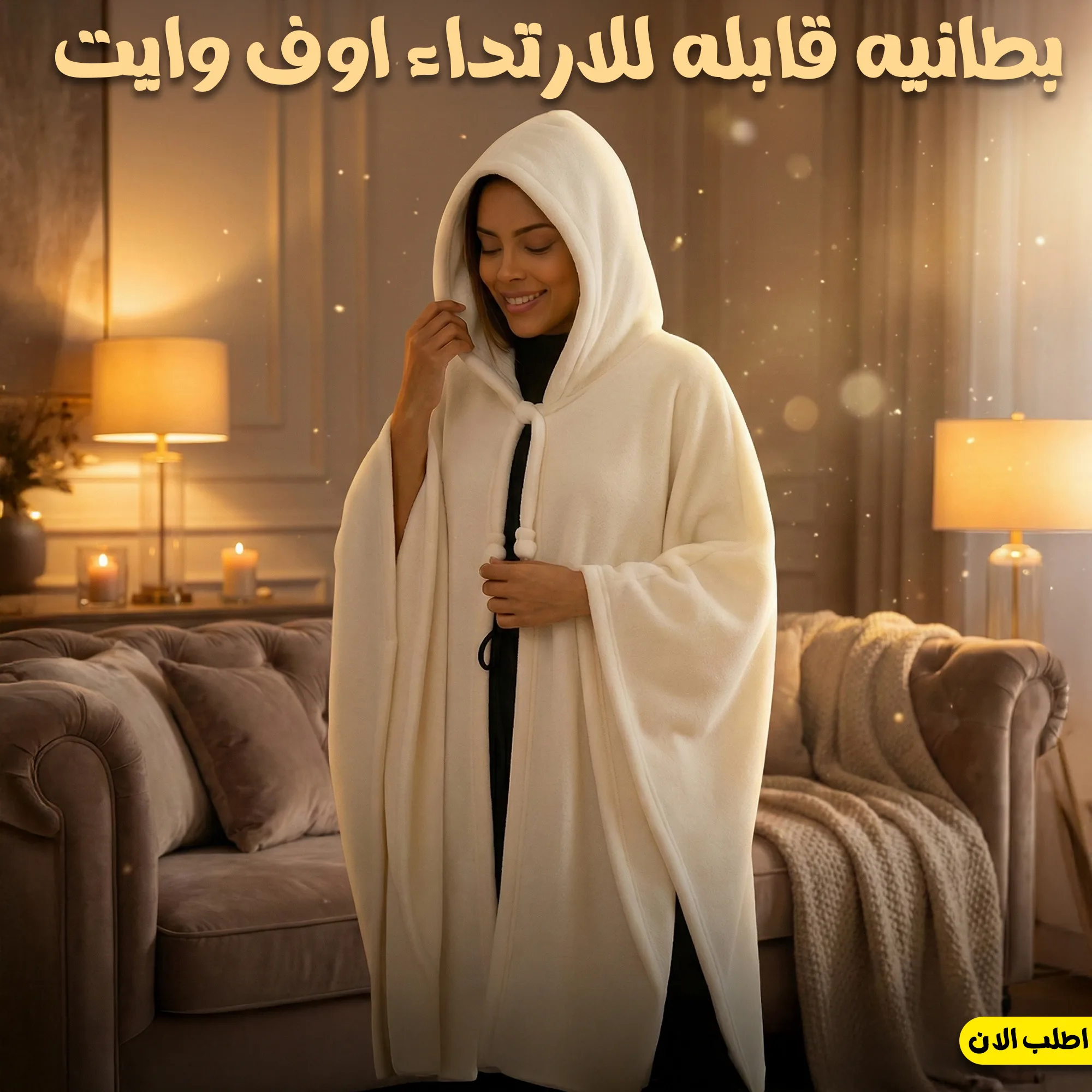بطانية قابلة للارتداء باللون الأوف وايت هي الحل الأمثل لدفء حقيقي وراحة تامة في الشتاء. صممت لتمنحك إحساسا كأنك داخل حضن ناعم.